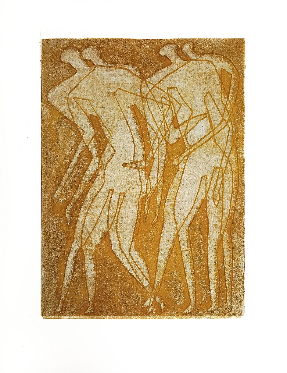 Otto Neumann 1895-1975, Four gold/ocher Men Dancing, 1959