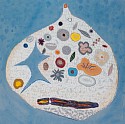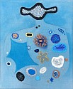 Oil, acrylic and pencil on canvas, 40" x 40", 42" x 42" framed